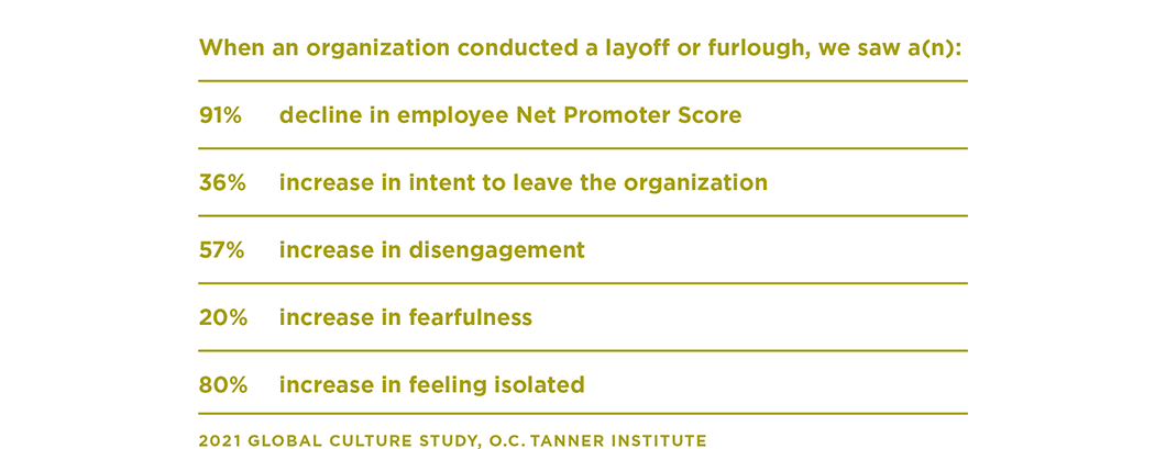 In response to the economic and operational challenges of the Covid-19 pandemic, organizations have made difficult decisions to protect their long-term viability. But many of these actions have had unintended consequences on employees and culture: