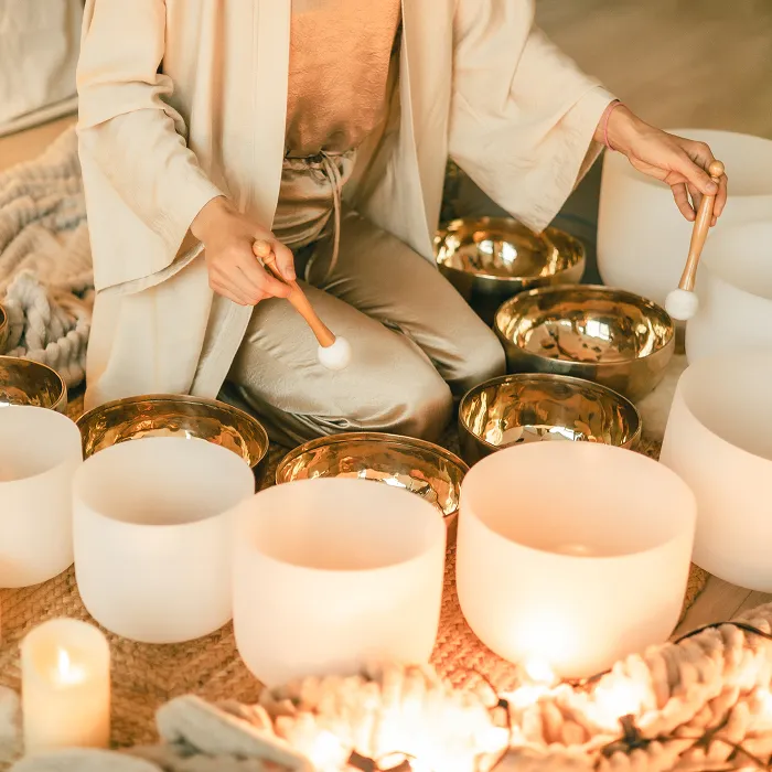 Find stillness and clarity in a peaceful soundbath experience.